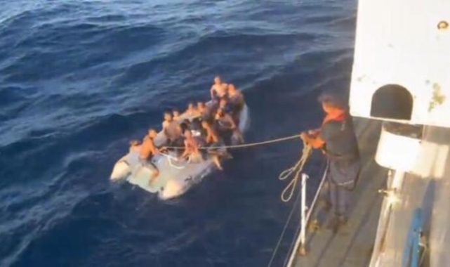 Muğla’nın Bodrum ilçesinde, makine arızası nedeniyle sürüklenen lastik bottaki 16 kaçak göçmen Sahil Güvenlik Komutanlığı tarafından kurtarıldı.