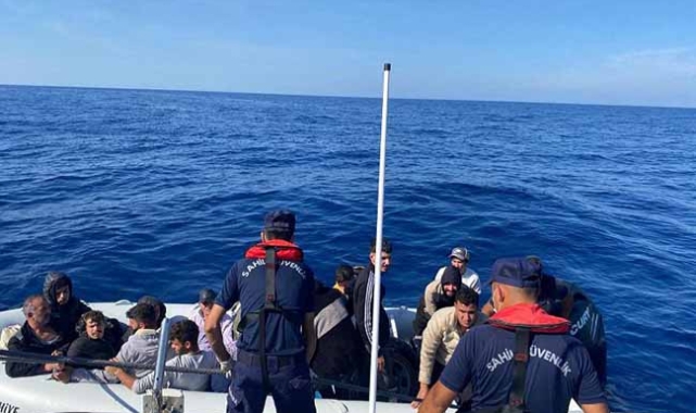 Muğla'nın Fethiye ilçesi açıklarında sürüklenen lastik bottaki 18 düzensiz göçmen kurtarıldı.