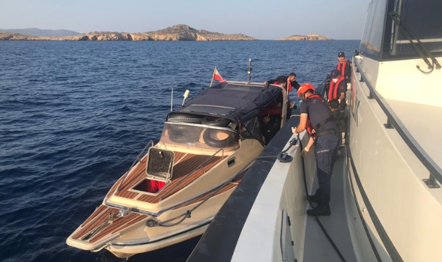 Muğla'nın Datça ilçesi açıklarında, Yunanistan unsurlarınca Türk kara sularına geri itilen fiber teknedeki 22 düzensiz göçmen kurtarıldı.
