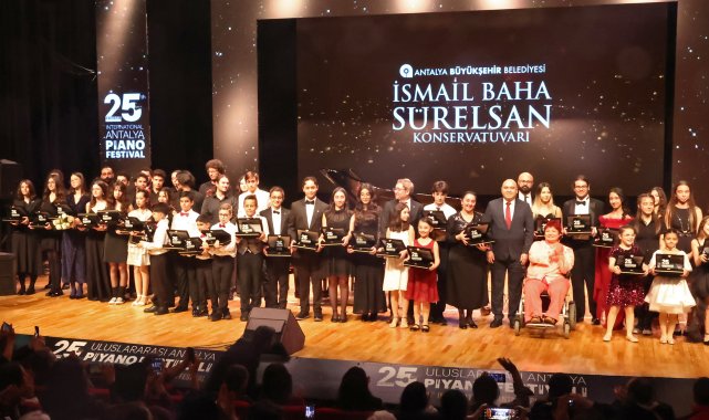 - ANTALYA Büyükşehir Belediyesi'nin ev sahipliğinde düzenlenen 25'inci Uluslararası Antalya Piyano Festivali'nde İsmail Baha Sürelsan Konservatuvarı'nın genç yetenekleri, ünlü sanatçıların eserlerini seslendirdi. Genç piyanistler performansları ile ayakta alkışlandı.Antalya Büyükşehir Belediyesi tarafından bu yıl 25'incisi düzenlenen Türkiye'nin en önemli sanat etkinliklerinden biri olan Uluslararası Antalya Piyano Festivali, Türkiye ve dünyadan birçok sanatçıyı müzikseverlerle buluşmaya devam ediyor. GENÇ PİYANİSTLERDEN MÜZİK ZİYAFETİ Piyano Festivali kapsamında Atatürk Kültür Merkezi Aspendos Salonu'nda 'Genç Yetenekler' konseri düzenlendi. Antalya Büyükşehir Belediyesi Kültür Sanat ve Sosyal İşler Dairesi Başkanlığı'na bağlı İsmail Baha Sürelsan Konservatuvarı Piyano Bölümü öğrencileri sahne aldı. Farklı yaş gruplarındaki 25 genç piyanist performanslarıyla müzikseverlere unutulmaz bir müzik ziyafeti sundu. Gecede Antalya Klasik Gitar Topluluğu da sahne alarak, Flamenko gösterisiyle bu özel geceye renk kattı.Gecenin sonunda Büyükşehir Belediyesi Kültür Sanat ve Sosyal İşler Dairesi Başkanı Okan Yavuz ve İsmail Baha Sürelsan Konservatuvarı Müdürü Okan Atila genç, piyanistlere ve eğitmenlerine teşekkür ederek plaket takdim etti.