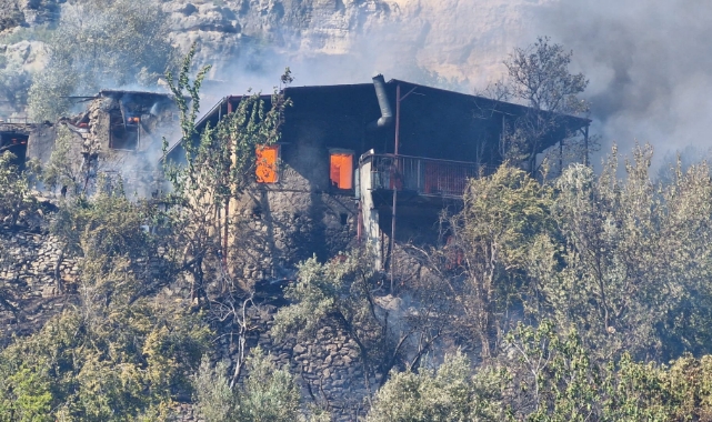 Kargıcak Mahallesi'deki tarım alanında henüz belirlenemeyen nedenle yangın çıktı. Yayılan alevler, mahalledeki 3 eve sıçradı.
