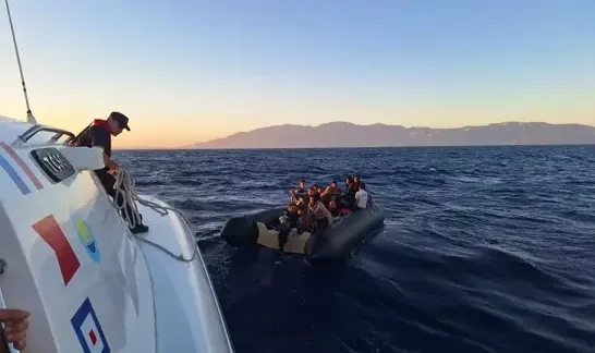 Muğla’nın Bodrum ilçesinde, lastik botun arızası nedeniyle sürüklenen aralarında çocuklarında bulunduğu 34 kaçak göçmen Sahil Güvenlik Komutanlığı ekipleri tarafından kurtarıldı.