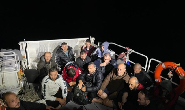 Muğla'nın Datça ilçesi açıklarında lastik botlarda 46 düzensiz göçmen ile 1 göçmen kaçakçısı yakalandı.