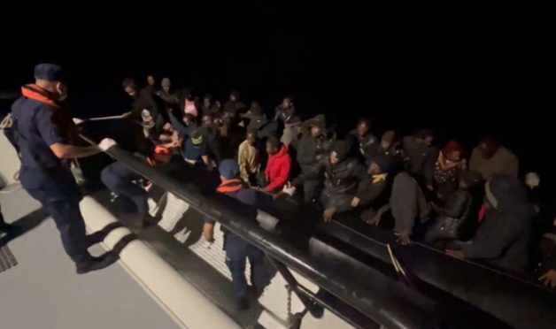 Muğla'nın Marmaris ilçesi açıklarında, Yunanistan unsurlarınca Türk kara sularına itilen lastik bottaki 47 düzensiz göçmen kurtarıldı.