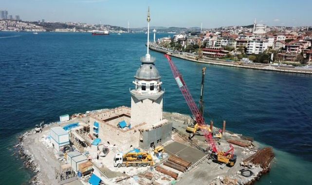 Restorasyon çalışmalarına 2021 yılında başlanan, İstanbul'un tarihi simgelerinden biri olan Kız Kulesi'nin son hali havadan görüntülendi. Mayıs ayının ilk haftasında açılması planlanan Kız Kulesi, etrafında bulunan iskelenin kalkmasıyla tamamen ortaya çıktı.