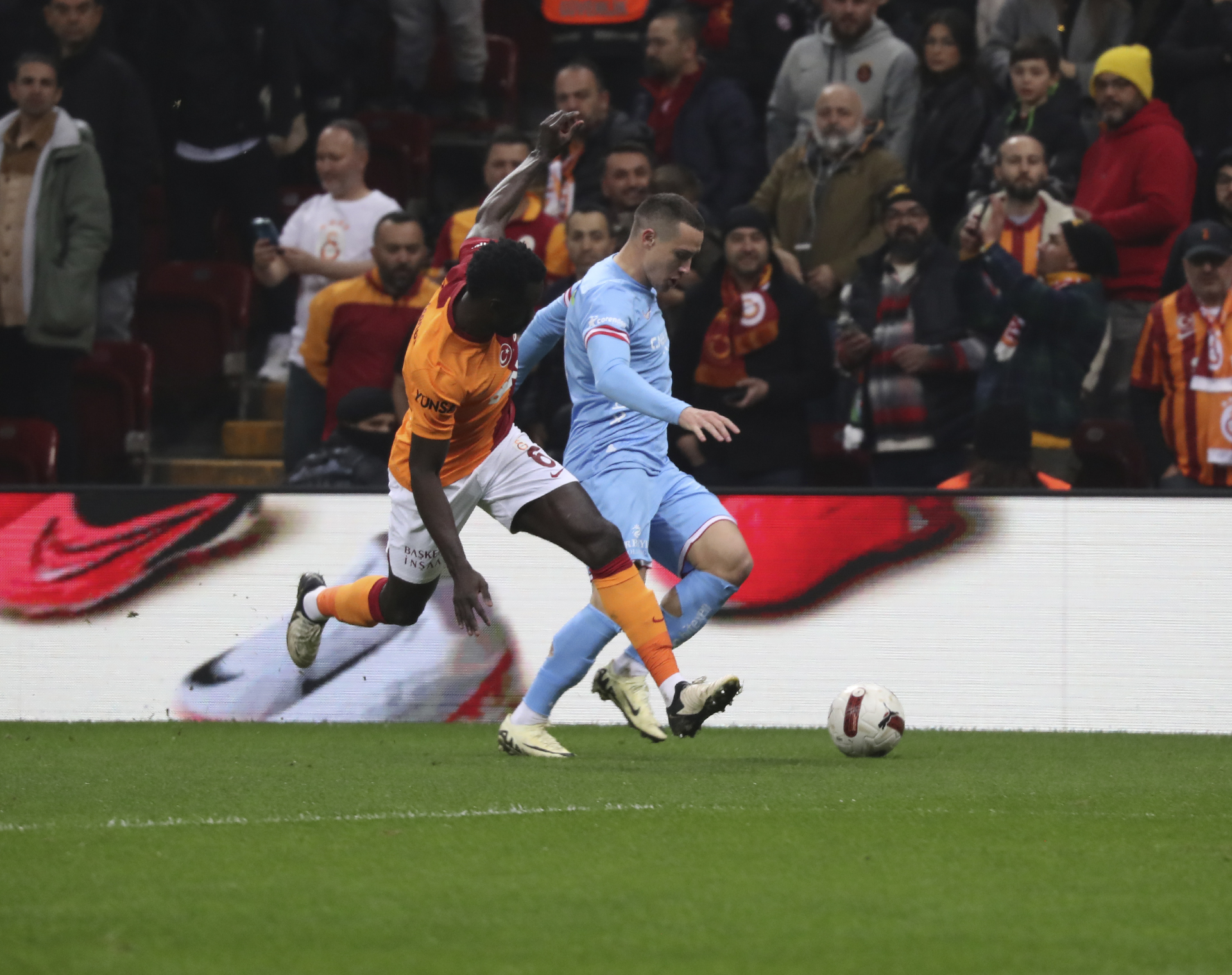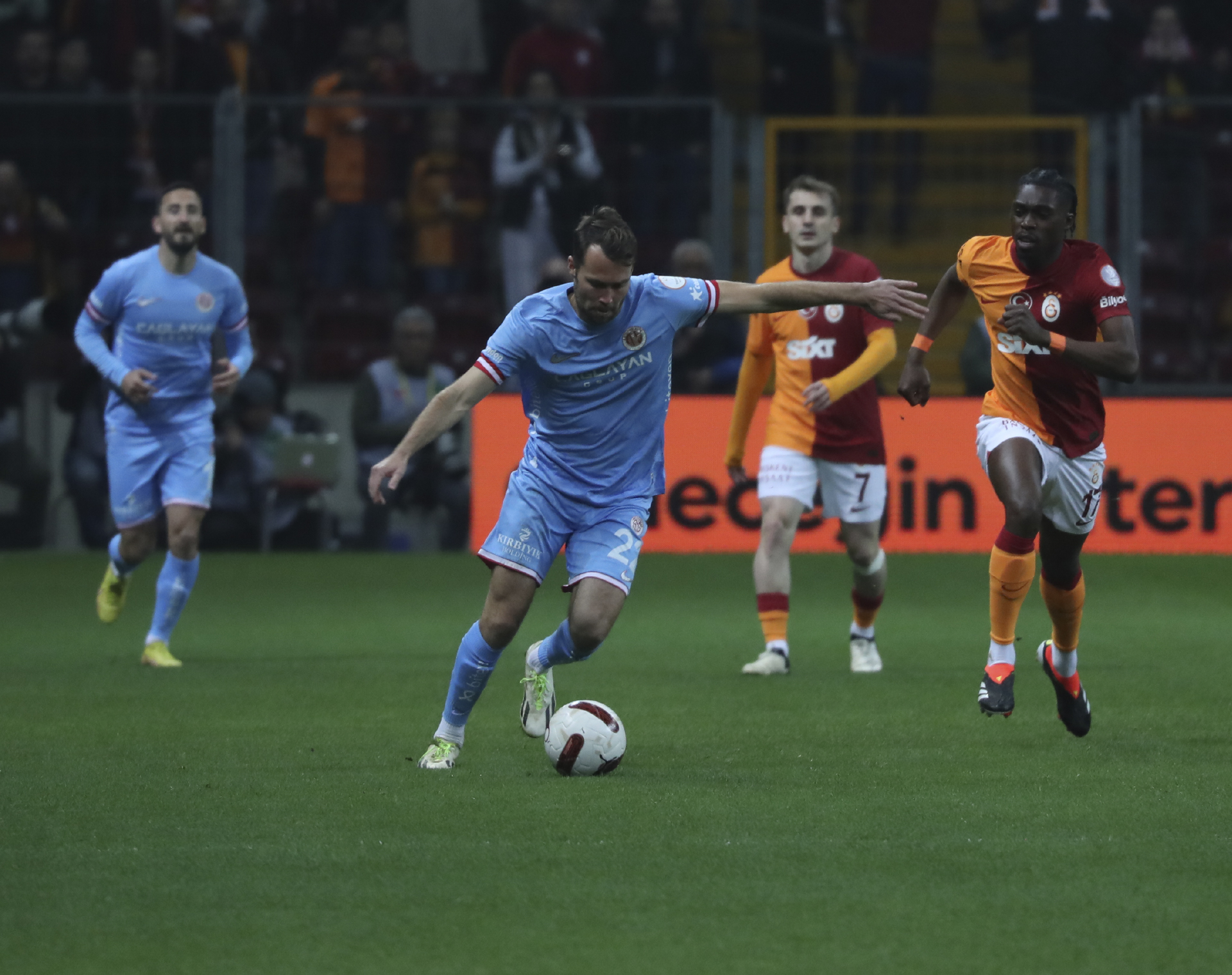 Süper Lig 2023-2024 sezonunun 27’nci haftasında Antalyaspor, deplasmanda Galatasaray ile karşı karşıya geldi. Galatasaray, 10’uncu dakikada Tete’nin ceza sahası içinde yerde kaldığı poziyonda penaltı bekledi. Pozisyonu VAR monitöründe izleyen maçın hakemi Abdülkadir Bitigen, Tete’ye bir müdahale tespit etti ve penaltı kararını verdi. Kazanılan penaltıda topun başına geçen Kerem Aktürkoğlu, sağ ayağının içiyle sağ köşeye plaseyi vurdu. Kaleci, Leite ile top ayrı köşelere gitti: 1-0. Golden sonra oyunun kontrolü Antalyaspor’a geçti. Akdeniz ekibi, 33’üncü dakikada sol kanattan geliştirdiği atakta Kaluzinski, arka direğe doğru kavisli ortaladı. Muslera’nın boşa çıktığı topta Van De Streek sağ ayağının içiyle topu boş ağlara gönderdi ve skora denge getirdi: 1-1. Galatasaray, 45+1’inci dakikada sağdan geliştirdiği atakta Torreira, arka alana doğru ortasını yaptı. Vinicius’un kafa vuruşunda kaleci Leite topu kale alanına doğru sektirdi. Kerem Aktürkoğlu, önünde kalan topa sağ ayağının içiyle yaptığı vuruş ağlara gitti: 1-2. İlk yarı Galatasaray’ın 2-1 üstünlüğüyle sona erdi. Galatasaray, 57’nci dakikada Mertens’in pasıyla soldan ceza sahasına giren Köhn, Erdoğan’ın müdahalesiyle yerde kaldı. Hakem penaltı noktasını gösterdi. Kerem Aktürkoğlu 59’uncu dakikada penaltıyı kaçırdı. Maçta başka gol olmayınca Antalyaspor, ligin 27’nci haftasında sahadan 2-1 mağlup ayrıldı ve 35 puanda kaldı. Kırmızı-beyazlı takım, ligde gelecek hafta Gaziantep Futbol Kulübü’nü ağırlayacak.