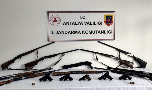 ANTALYA'nın Alanya ilçesinde jandarma, 5 adrese düzenledikleri operasyonda 5 tabanca, 10 av tüfeği ve çok sayıda fişek ele geçirdi. Antalya İl Jandarma Komutanlığı tarafından yürütülen çalışmalar sonucu, Alanya Cumhuriyet Başsavcılığı talimatıyla ilçedeki 5 farklı adrese eş zamanlı operasyon düzenlendi. Antalya İl Jandarma Komutanlığı ekiplerince yapılan aramalarda ruhsatsız 5 tabanca, 10 av tüfeği, 5 tabanca şarjörü, 55 tabanca fişeği ve 65 av tüfeği fişeği ele geçirildi. Olayla ilgili adli tahkikat başlatıldı.