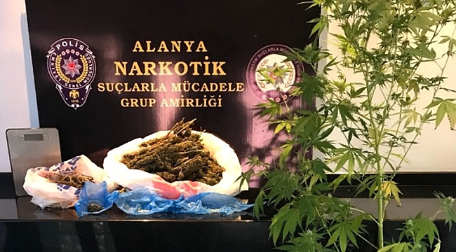 Edinilen bilgiye göre, bir şahsın evinde uyuşturucu madde bulundurduğu bilgisine ulaşan Alanya İlçe Emniyet Müdürlüğü Narkotik Grup Amirliği ekipleri, çalışma başlattı. Tespit üzerine Y.D.'yi takibe alan ekipler, savcılıktan alınan izinin ardından Hacımehmetli Mahallesi'ndeki eve baskın düzenledi. Baskında 960 esrar, 10 adet uyuşturucu hap, saksıda ekili 1 Hint keneveri ve uyuşturucu satışında kullanılan hassas terazi ele geçirilirken, olayla ilgili şüpheli Y.D. gözaltına alındı. Y.D. emniyetteki işlemlerinin ardından adliyeye sevk edildi.