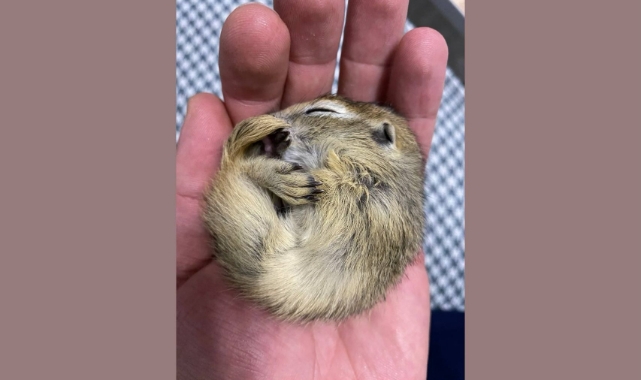 Erzurum'da bitkin halde bulunan, "Anadolu gelengisi" olarak da bilinen Anadolu yer sincabı yavrusu, rehabilitasyon sürecinden sonra doğaya bırakılacak.