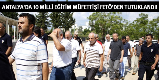 Antalya'da, Fetullahçı Terör Örgütü/Paralel Devlet Yapılanması (FETÖ/PDY) kapsamında yürütülen soruşturmada adliyeye sevk edilen 15 Milli Eğitim müfettişinden 10’u tutuklandı.
