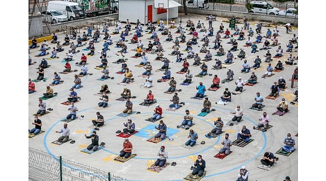 Kentte daha önceden belirlenen camilerin dışında kapalı pazar yerleri ve okul bahçelerinde de cuma namazı kılındı. Kepez İlçesi Teomanpaşa Mahellesi'nde bulunan İsmail Hakkı Kaya İlköğretim Okulu bahçesinde toplanan yüzlerce vatandaş cuma namazını kılıp dua etti. Sosyal mesafe kurallarına uygun şekilde işaretlenen bahçede vatandaşlar arasında 1,5 metre mesafe bırakıldı. İki bekçi tarafından girişlerin kontrol edildiği cuma namazı öncesi vatandaşlar, ellerine dezenfektan dökülerek bahçeye alındı. Vatandaşlar, yanlarında getirdikleri kendi seccadeleri üzerinde namazlarını kıldı. 65 yaş üstü vatandaşlar ise namaza alınmayarak evlerine gönderildi. Çevredeki binaların balkonlarında da bazı vatandaşların namaz kıldıkları görüldü. Çocuklar ve kadınlar da apartmanların çatılarına çıkarak namazı uzaktan izledi.