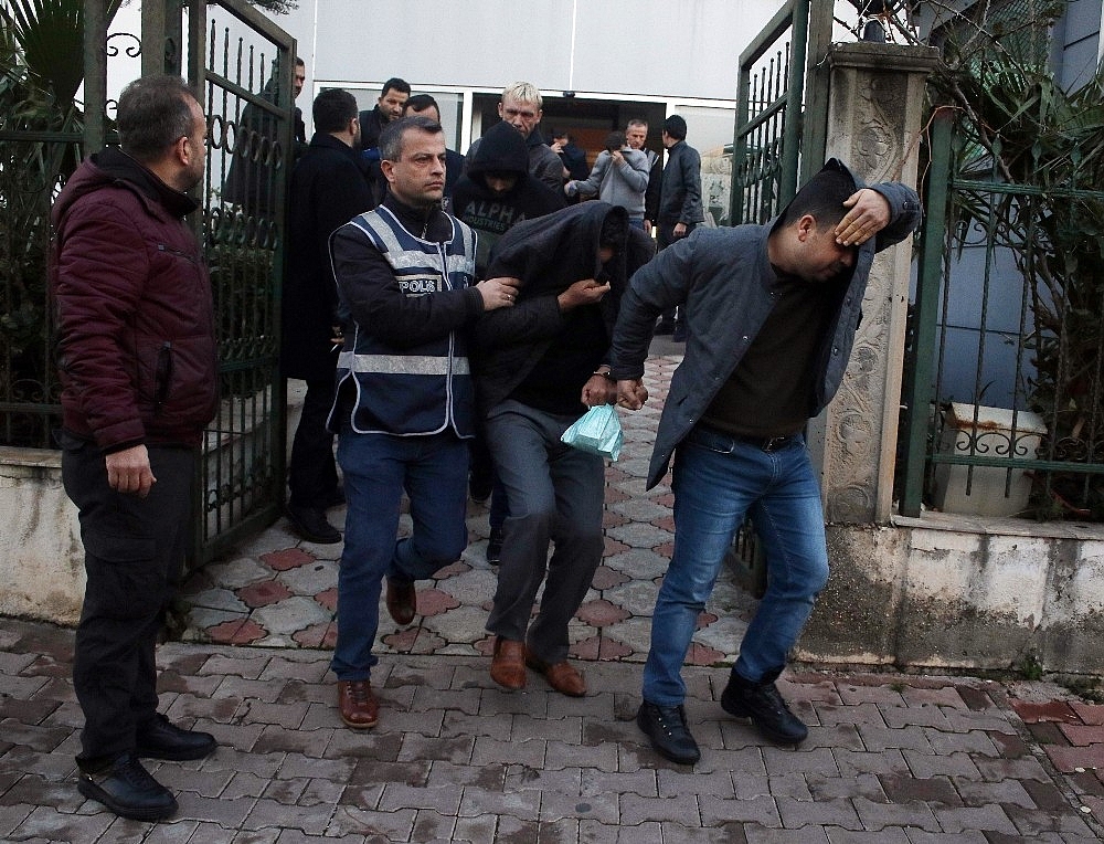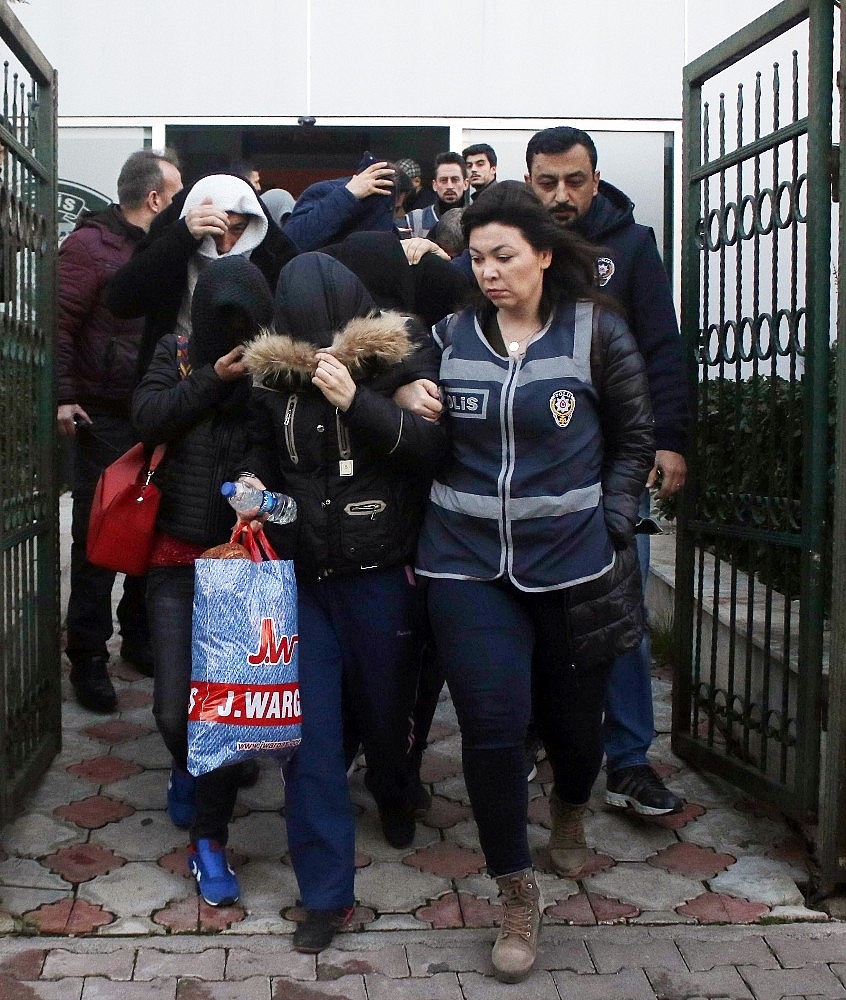 Antalya'da fuhuş şebekesine yönelik 32 adrese düzenlenen baskınlarda, fuhuş yaptığı iddia edilen 21 yabancı, 2 Türk uyruklu kadın ile kadınlara fuhuş yaptırdığı ileri sürülen aralarında kamu görevlilerin de bulunduğu 2'si kadın, 35 şüpheli gözaltına alındı.