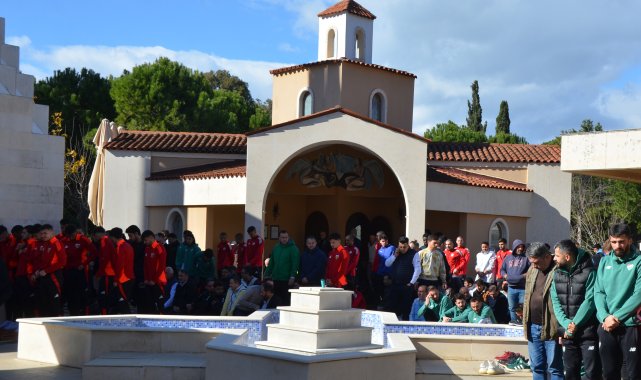 İKİNCİ devre hazırlıklarını Antalya'nın Serik ilçesinde sürdüren takımların futbolcu ve teknik heyetleri cuma namazını Dinler Bahçesi'nde kıldı. Antalya'da kamp çalışmalarını sürdüren Kocaelispor, Bursaspor, Kayserispor, Çaykur Rizespor ve Konyaspor'un yanı sıra diğer Anadolu kulüplerinden bazı futbolcular ve teknik heyetler, Serik'e bağlı Belek turizm merkezinde cami, kilise ve sinagogun bir arada bulunduğu Dinler Bahçesi'ne geldi. Takım otobüsleriyle gelen futbolcular ve teknik heyetler burada cuma namazı kıldı. Namaz sonrası futbolcular taraftarla hatıra fotoğrafı çektirdi.