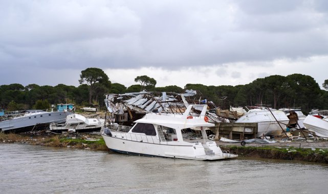 - ANTALYA'da etkili olan hortumlar, Kumluca, Finike, Aksu ve Manavgat ilçelerinde büyük hasara yol açtı. Hortumlar nedeniyle seralar yıkıldı, evlerin çatıları zarar gördü. Aksu Çayı'nda çok sayıda tekne hasar aldı.Antalya'da geceden beri etkili olan şiddetli yağış ve fırtına, hayatı olumsuz etkiledi. Yağış ve fırtına nedeniyle araçlar yolda mahsur kaldı, seralar zarar gördü. Bir aracın üzerine sundurma devrildi. Kent genelinde sağanak ve fırtına etkili olurken, Kumluca, Finike, Aksu ve Manavgat ilçelerinde yaşanan hortumlar, büyük zarara yol açtı. Finike'de sahilden gelen hortum, sahil yolundaki yönlendirme levhalarını devirdikten sonra Yeni Elmalı Yolu güzergahına ilerledi. Yeni Elmalı Yolu üzerindeki Saklısu Mahallesi'nde seralara zarar veren hortum, çevredeki apartmanlarda da hasara yol açtı. KUMLUCA'DA ELEKTRİK KESİNTİSİ Kumluca ilçesine bağlı Mavikent Mahallesi'nde denizden gelen hortum, Yalı mevkisinden Yenice mevkisine doğru ilerledi. Hortum, seralara, enerji nakil hatlarına ve evlerin çatılarına kurulu güneş enerjisi sistemlerine zarar verdi. Enerji nakil hatlarında meydana gelen arıza nedeniyle mahallede elektrik kesintisi yaşandı.100 DÖNÜME YAKIN SERA ZARAR GÖRDÜKumluca Ziraat Odası Başkanı Hidayet Kökce, Mavikent Yenicepınar'a doğru ortalama 300 metre eninde bir hortum meydana geldiğini belirterek, "Burada 100 dönüme yakın seranın zarar gördüğünü tahmin ediyoruz. Tabii gece olunca çok fazla göremiyoruz, elektrik de kesik olunca. Allah'a çok şükür, hamdolsun can kaybımız yok, yaralımız yok. Gündüz vakti olsaydı, seraların içinde mutlaka çalışanlar olurdu. Akşam ezanı ve yemeğinden sonra meydana geldi. Tüm çiftçilere geçmiş olsun" dedi. ÇOK SAYIDA AĞAÇ DEVRİLDİManavgat'ta gece saatlerinde denizden gelen hortum da çok sayıda ağacın kökünden sökülüp devrilmesine neden oldu. Hortum nedeniyle muz seraları yıkıldı, evlerin çatıları zarar gördü. Çolaklı Mahallesi'nin bir sokağı tamamen çatıdan dökülen kiremitlerle kaplandı. Kiremitler bazı evlerin camlarından içeri savruldu, panjurlar, klimalar ve güneş enerjili su ısıtma sistemleri zarar gördü. Elektrik ve telefon hattı kabloları zarar gören mahallede ekiplerin çalışması sürüyor. Denizyaka Mahallesi'nde de hortum nedeniyle seralar ve tarım alanları zarar gördü. Kumköy bölgesinde de çok sayıda ağaç devrildi. HORTUM TEKNELERİ PARÇALADIAksu ilçesinde gece saatlerinde fırtına ve şiddetli yağış etkili oldu. Aksu Çayı üzerinde gece saatlerinde oluşan hortum nedeniyle çayda bulunan milyonlarca liralık tekneler zarar gördü. Çay üzerinde bulunan bazı tekneler hortumla birlikte karaya; karadaki bazı tekneler de parçalanarak metrelerce uzağa savruldu. Bakım için karada bekleyen teknelerin bazıları da birbirleri üzerine devrildi.BARAKALAR YERLE BİR OLDUÇay kenarındaki barakalar yerle bir olurken, köprü üzerindeki aydınlatma direkleri ve iskeleler parçalandı. Vatandaşlar günün ağarmasıyla birlikte hortumun geçtiği bölgeye gelerek, zararlarını tespit etmeye çalıştı. Zarar gören yerleri kontrol eden tekne sahipleri, kopan parçaları çevrede aradı. Teknelerin yakınında yer alan köprüden ilerleyen bir araç, hortum sırasında teknelerden savrulan tahta parçalarından zarar gördü. 'ZARARIMIZ BÜYÜK'Aksu Çayı üzerindeki teknesi hortumda zarar gören Burhan Bulut, "Hortum olduğunda evdeydim. Haber geldi, tekneme bakmaya geldim. Teknemde maddi hasar olduğunu gördüm. Çay üzerindeki tekneler birbirinin üzerine yıkıldı. Hortum gelmiş, buradaki her şeyi uçurmuş. Kıyıdaki tekneler metrelerce ileriye savrulmuş. Zararımız büyük" dedi. HALI SAHANIN ÇATISI ÇÖKTÜKepez ilçesi Gündoğdu Mahallesi'ndeki bir halı sahanın çatısı, maç hazırlıkları yapıldığı sırada kuvvetli rüzgarla çöktü. Çatıdan gelen seslerden tedirgin olan futbolcular, koşarak sahadan çıktı. Futbolcular sahayı terk ettikleri anda çatıda çökme yaşandı. Olayda yaralanan olmadı.