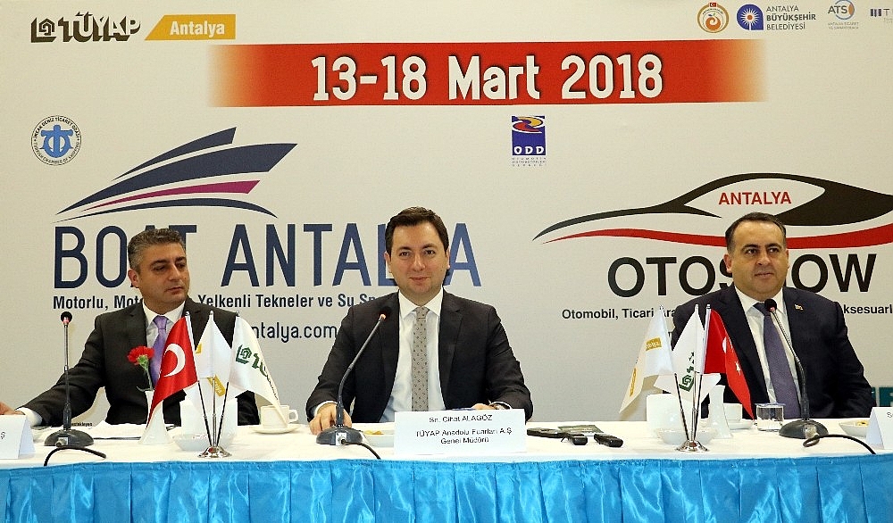 Antalya'da Tüm Fuarcılık Yapım A.Ş. (TÜYAP) tarafından Antalya Valiliği, Antalya Büyükşehir Belediyesi, Antalya Ticaret ve Sanayi Odası (ATSO) Türkiye Otelciler Federasyonu ve KOSGEB'in destekleri, Otomobil Distribütörleri Derneği(ODD) işbirliği ile gerçekleştirilecek olan Antalya Otoshow, Otomobil, Ticari Araçlar, Motosiklet, Bisiklet ve Aksesuarları Fuarı ve Antalya Deniz Ticaret Odası işbirliği ile hazırlanan Boat Antalya Motorlu, Motorsuz ve Yelkenli Tekneler ve Su Sporları Fuarı 13-18 Mart 2018 tarihleri arasında ANFAŞ Antalya Fuar ve Kongre Merkezi'nde eş zamanlı olarak gerçekleştirilecek.