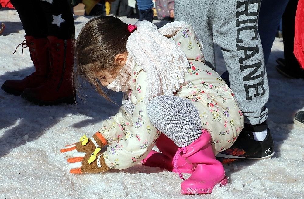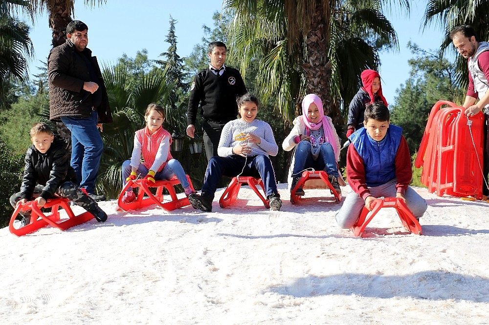 Antalya'da çocuklar kar topu oynayabilsin diye, yaylalardan kamyonlarla 200 ton kar getirildi. Sömestr tatilinde karı ilk defa gören yüzlerce çocuk, aileleriyle birlikte doyasıya eğlendi.