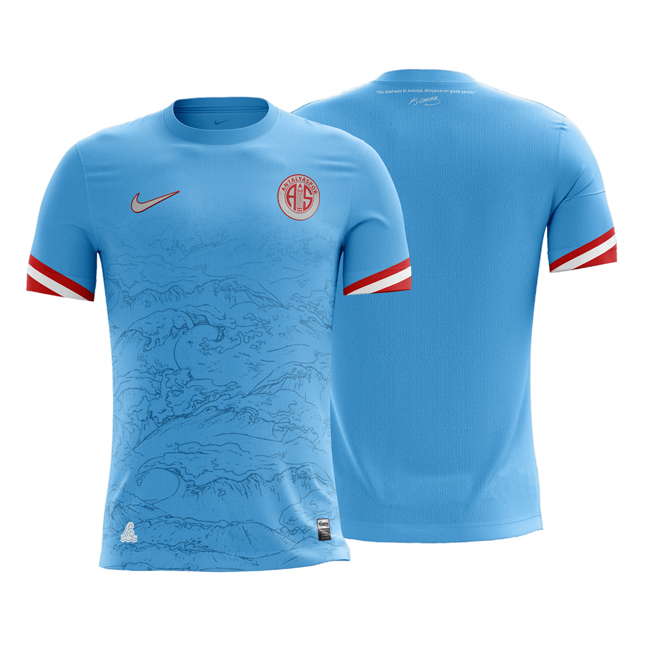 Üzerinde dalga deseni, kollarında kırmızı-beyaz şeritler bulunan alternatif mavi forma, çevre ve denizlerdeki kirliliğe dikkati çekiyor. Formanın sol alt köşesine ise dalga emojisi eklendi.