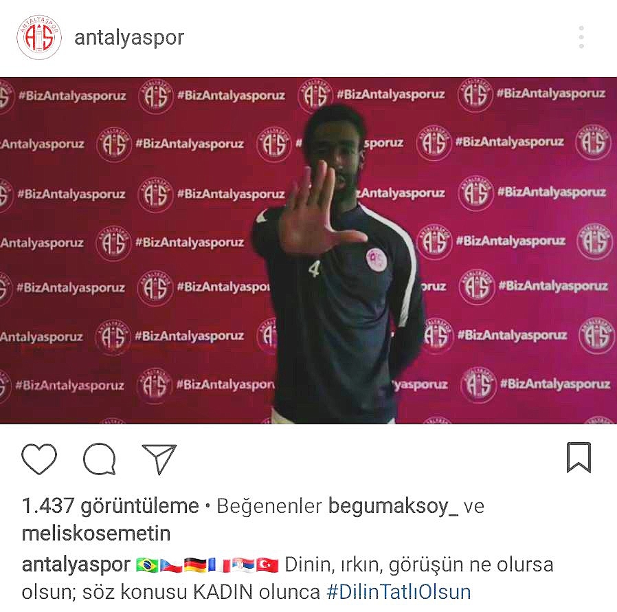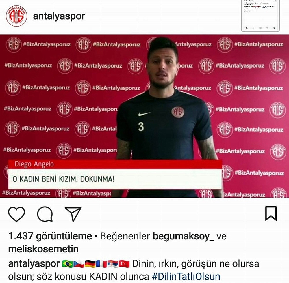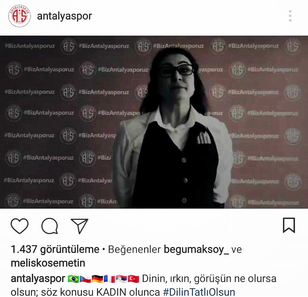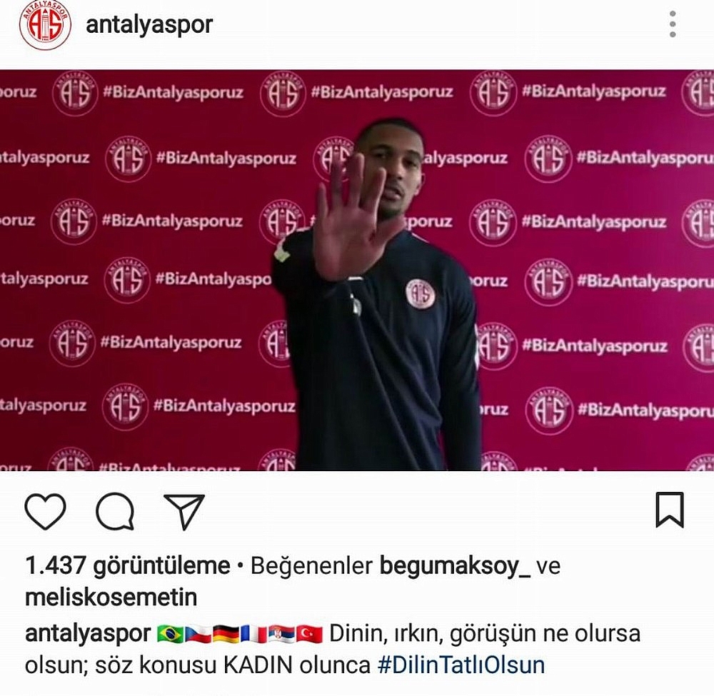 Antalyaspor, kadınlara karşı artan şiddete yönelik olarak, 8 Mart Dünya Kadınlar Günü'nde sosyal medya hesabından 'Dinin, ırkın, görüşün ne olursa olsun, söz konusu Kadın olunca #DilinTatlıOlsun' etiketi altında anlamlı bir video paylaştı. Paylaşım kısa sürede binlerce beğeni aldı. Paylaşılan videoda futbolcular Türkçe, Portekizce, Sırpça, Almanca, Çekçe, İngilizce ve Fransızca kadına karşı şiddete yönelik olarak 'Dokunma' sözlerini sarf etti.