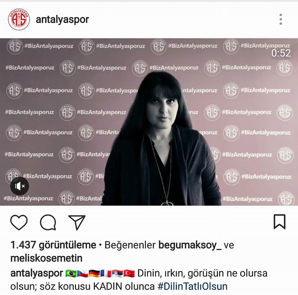 Antalyaspor Kulübü, 8 Mart Dünya Kadınlar Günü dolayısıyla sosyal medya hesabından 7 dilde kadına şiddete karşı video paylaştı.