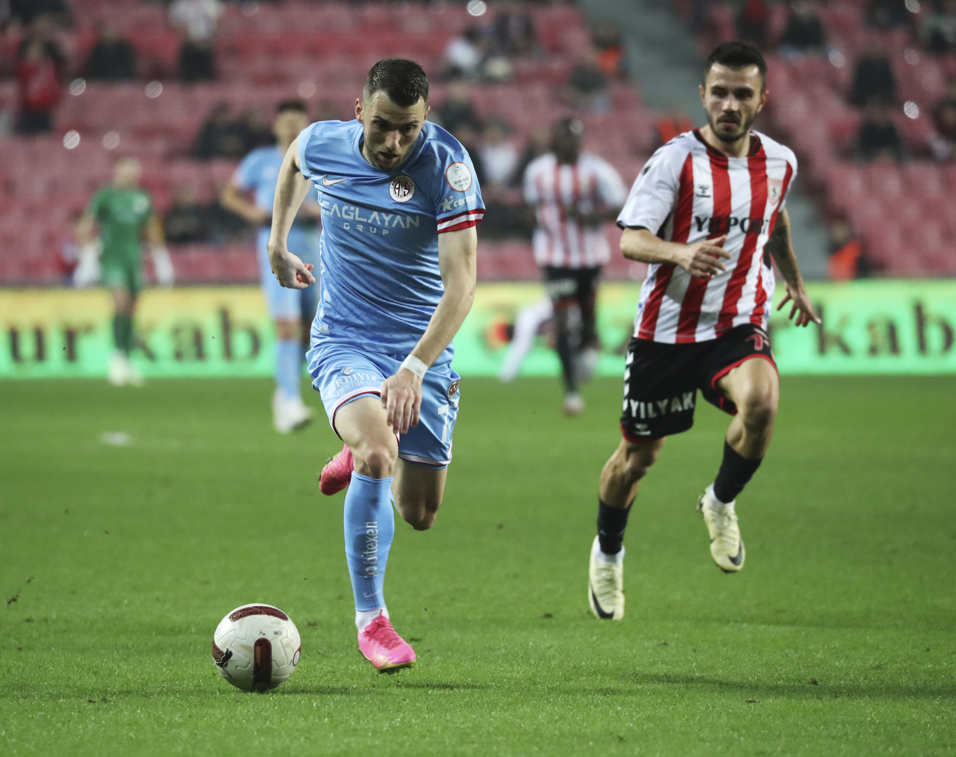 Süper Lig 2023-2024 sezonunun 25’inci haftasında Antalyaspor, deplasmanda Samsunspor ile karşı karşıya geldi. Antalyaspor’un 27’nci dakikada merkezden geliştirdiği atakta Van De Streek, savunma arkasına sarkan Buksa’ya aradan pasını gönderdi. Kaleciyle karşı karşıya kalan Buksa, ceza sahasına girer girmez sağ köşeye vuruşunu yaptı ve top ağlara gitti. VAR, Buksa’nın ofsaytta olduğunu belirledi ve golü iptal etti. Akdeniz ekibi, ilk yarıda %55 ile topa daha çok sahip olan taraftı. Mücadelenin ilk yarısından gol sesi çıkmadı. İkinci yarıya etkili başlayan Samsunspor, 59’uncu dakikada sağ kanattan geliştirdiği atakta Holse, merkezden savunma arkasına sarkan Mouandilmadji’ye yerden pasını gönderdi. Kaleciyle karşı karşıya kalan Mouandilmadji, sol ayağının ucuyla vuruşunu yaptı ve top sağdan filelere gitti: 1-0. Samsunspor, 90+1’nci dakikada sağdan geliştirdiği atakta Raman, arka alana doğru ortasını yaptı. Holse topu tek dokunuşla Muja’nın önüne bıraktı. Muja boş pozisyonda yaptığı sert vuruşla topu ağlara gönderdi: 2-0. Aradığı golü bir türlü bulamayan Antalyaspor, ligin 25’inci haftasında sahadan 2-0 mağlup ayrıldı ve 34 puanda kaldı. Kırmızı-beyazlı takım, ligde gelecek hafta Corendon Park’ta İstanbulspor’u ağırlayacak.