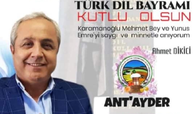 Başkan Ahmet Dikici, “Türkçemizin varlık mücadelesinde öne çıkarak ferman yayınlayan Mehmet Bey’in açtığı yolda, ilk fermandan yüzyıllar sonra, bu sefer ataları Karamanlı olan Gazi Mustafa Kemal Atatürk yürümüş ve yaptığı dil devrimi ile Türkçe’yi yücelten ölümsüz lider olmuştur. ‘Türk dili, Türk milletinin kalbidir, zihnidir’ diye konuşarak her şeyin dil sayesinde muhafaza olunduğunu belirten Ulu Önder Atatürk, ‘Gaye, bugünkü ve yarınki Türk’ün medeniyetini kucaklayacak en güzel ve en ahenkli Türkçe'dir’ diyerek dil devriminin ulusumuzun yarınları açısından ne kadar önemli olduğunun altını çizmiştir. Bu itibarla Türkçe’nin yeniden hayat bulmasını sağlayan tarihimizin iki büyük dil devrimcisinin Karamanlı olması, bizler için büyük bir onur, gurur ve övünç kaynağıdır. Geçmişten geleceğe kuşaklarımıza hatıralarımızı, mücadelelerimizi aktaran, toplumumuzu birbirine kenetleyen böyle bir zenginliğe, dilimize, Karamanımızın sahip çıkması, kentimizin ‘Türk Dilinin Başkenti’ unvanını ne kadar hak ettiğini göstermektedir” diye konuştu. Tarihimiz ve dilimiz açısından önemli bir dönüm noktası olan ve her yıl Türkçe’nin resmi dil ilan edilişinin yıl dönümünde gerçekleştirilen Türk Dil Bayramı’nı kutlayan Dikici şöyle devam etti: “Türk Dilinin Başkenti Karamanlı olmaktan aynı coğrafyada olmandan dolayı onur duyduğumu ifade ederek hemşehrilerimizin ve ulusumuzun 747’inci Türk Dil Bayramı'nı kutluyor; başta Ulu Önderimiz Mustafa Kemal Atatürk olmak üzere Karamanoğlu Mehmet Bey'in, Yunus Emre'nin ve Türkçemize hizmet eden tüm şahsiyetlerin aziz hatıraları önünde saygıyla eğilerek teşekkürlerimi ve minnetlerimi sunuyorum.” (www.akdenizmanset.com.tr) ---