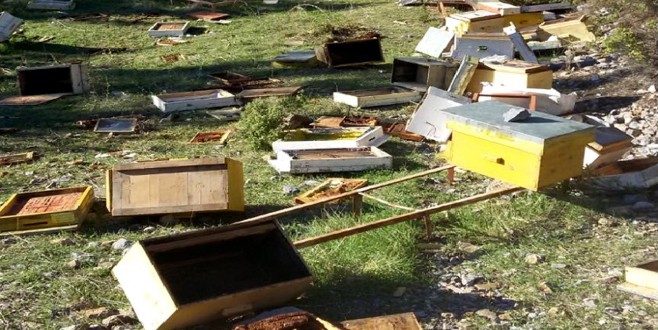 Gündoğmuş’ta kışlıklarda duran 45 arı kovanı ayı saldırısı sonucunda parçalandı.