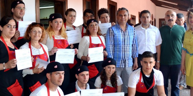 Tekkapılı Han'da düzenlenen sertifika törenine Muratpaşa Belediye Başkanı Ümit Uysal, Belediye Kültür İşleri Müdürü Deniz Demirel, HEM Müdürü Kenan Yavuz, müdür yardımcısı Fedai Yaman ve kursiyerlerin aileleri katıldı. Aşçı yardımcılarının hazırladığı yemek ve tatlıların tadına bakan ziyaretçiler, tam not verdi. Başkan Uysal ve HEM Müdürü Yavuz daha sonra kursiyerlere sertifikalarını verdi.