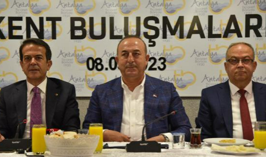Antalya'dan AK Parti milletvekili adayı gösterilen Dışişleri Bakanı Mevlüt Çavuşoğlu, Antalya Ticaret Borsası'nda (ATB) düzenlenen ‘Kent Buluşmaları’ toplantısının konuğu oldu. Burada yaptığı konuşmada deprem bölgesine yaptıkları yardımlar ve kente gelen depremzedelere sahip çıktıkları için ATB yönetimine teşekkür eden Çavuşoğlu, yaraları sarmak için devlet millet el birliğiyle çalıştıklarını söyledi. Kentten ihracatın 2 milyar dolara çıktığına işaret eden Çavuşoğlu, "Tarım ürünleri ihracatımız 800 milyon dolara yaklaştı, 1 milyar dolara doğru hızla gidiyor. Görevimiz öncelikle üreticimizi desteklemek, ürünlerinin verimli olması için yanında olmak, satarken içeride ve dışarıda önündeki engelleri kaldırmak" dedi. Tarım ürünlerinin Anadolu'ya daha çabuk ulaştırılabilmesi için Demirkapı Tüneli'nin açılışını yaptıklarını hatırlatan Çavuşoğlu, ürünlerin özellikle kış şartlarında zorlanmadan ülkenin her yerine gidebilmesinin önemli olduğunu dile getirdi.