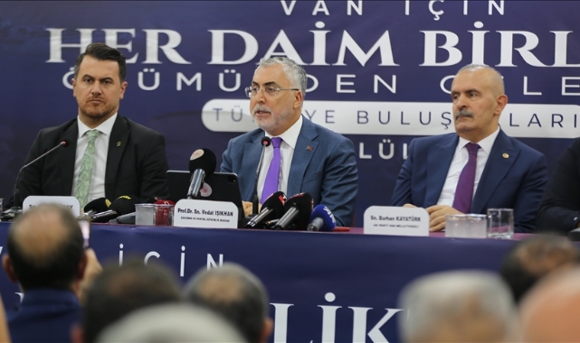 Işıkhan, AK Parti'nin hiçbir zaman seçimden seçime sahaya çıkan bir parti olmadığını, bir millet hareketi ve milletin ta kendisi olduğunu aktardı. Büyük ve güçlü Türkiye hedeflerinden taviz vermeyeceklerini vurgulayan Işıkhan, şöyle devam etti: "Bildiğiniz gibi mart ayında yerel seçim maratonumuzu hayırlısıyla tamamladık. Seçimi gündemimizden çıkardık. Demokratik süreçlerin bir gereği olarak çeşitli belediyelerde yeni yönetimler göreve geldi. Fakat bu görev değişimlerinde maalesef, demokrasinin ruhuna aykırı, adaletin terazisini sarsan uygulamalara şahit olduk. Seçimlerden sonra Sayın Cumhurbaşkanı'mız da ifade etti, ben de açıkça uyardım. 'Belediye işçilerinin ekmeğiyle oynamayın' dedim ama maalesef bazı belediyelerde binlerce işçinin, emekçinin, ekmeğiyle oynandı. belediye yönetimlerinin kadrolaşma adına binlerce işçiyi haksız yere işten çıkardığı bir tabloyla karşılaştık. Bizim için her işçi, her emekçi, alın teri döken her insan kutsaldır. Kimsenin çalışanların emeğini, ekmeğini heba etmeye, umutlarını kırmaya hakkı yok. Bakanlık olarak bu süreçte durumu yakından takip ettik, etmeye devam ediyoruz. Belediyelerin aldığı keyfi kararlar karşısında harekete geçerek kapsamlı bir teftiş başlattık. Teftişler sonucunda gördük ki işten çıkarılan binlerce işçi, haksız bir şekilde mağdur edilmiştir. Bu nedenle ilgili belediyelere ciddi para cezaları kestik ve işçilerin haklarını korumak adına gereken tüm adımları attık. Bu karanlık tablonun yaşandığı belediyelerden ikisi de maalesef Van'da. Van Büyükşehir Belediyesi ve İpekyolu Belediyesi." Emek ve alın terinin siyasetin malzemesi olamayacağını, işçinin hakkını korumak, adaleti tesis etmek ve herkesin ekmeğine sahip çıkmakla mükellef olduklarını belirten Işıkhan, Van ve diğer illerde yaşanan işçi kıyımını asla görmezden gelmeyeceklerini dile getirdi. Haksızlığa uğrayan işçilerin hakkını sonuna kadar savunacaklarını vurgulayan Işıkhan, "Ayrıca, işçilere bu hukuksuzluğu yapan belediyelerin neredeyse tamamı sözde "emekçinin yanında" olduğunu söyleyen, emek üzerinden siyaset yapan partiler. Bunların hangi partiler olduğunu anladınız. Bu partilerin "emekten yana" olduklarını iddia etmeleri ne kadar yalansa, işçilerin haklarını hiçe saymaları da o kadar acı verici. Halkın güvenini suistimal eden bu anlayışın gerçek yüzünü bir kez daha ortaya koyduk ama kimse merak etmesin, devlet olarak her zaman mağdurların yanındayız. Hukuk çerçevesinde bu haksızlıkların peşini bırakmayacağız. Gereğini yapacağız nitekim yapıyoruz da." diye konuştu."16 belediyeye 25 milyon 700 bin lira idari para cezası adımını attık"