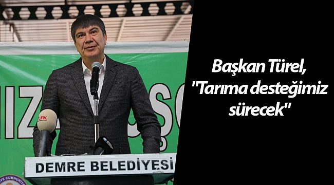 Çiftçinin ürünlerini değerlendireceği büyük haller yaptıklarını anlatan Türel, "Küçük belde hallerini birleştirdik. Etkinliklerini arttırdık. Mezbahalar yapıyoruz. Demre mezbahamızı yakında hizmete açacağız. Artık Antalya Büyükşehir Belediyesi çiftçisine kapalı devre sulama suyu sistemi yapan, haller yapan, mezbahalar yapan, eli nasırlı çiftçisine elektriği bedava kullandıran bir belediye oldu. Sadece ve sadece göreve geldiğimizden bugüne kadar tarım sektörüne vermiş olduğumuz toplam bu anlattığım projeler kapsamında destek 210 milyonu buldu. Sizlere helali hoş olsun. Çünkü siz zenginleştikçe Demre zenginleşiyor, Antalya zenginleşiyor, Türkiye zenginleşiyor."