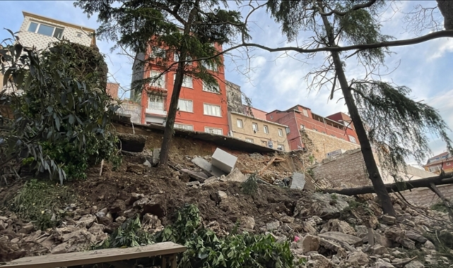 Beyoğlu'nda bir sokakta istinat duvarının çökmesi sonucu 3 bina boşaltılarak mühürlendi.