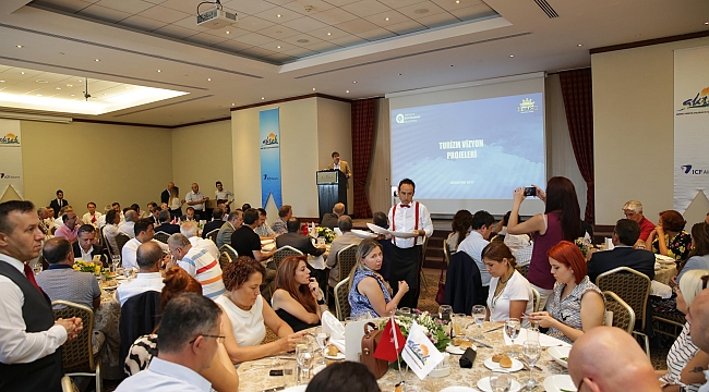 Büyükşehir Belediye Başkanı Menderes Türel, Akdeniz Turistik Otelciler ve İşletmeciler Birliği'nin (AKTOB) Ağustos ayı toplantısına konuk oldu. Toplantıya Muratpaşa Belediye Başkanı Ümit Uysal, Konyaaltı Belediye Başkanı Muhittin Böcek, TÜROFED Başkanı Osman Ayık, AKTOB Başkanı Erkan Yağcı ve turizm sektörü temsilcileri katıldı. Toplantıda Büyükşehir Belediyesi'nin Boğaçay, Lara Kruvaziyer ve Yat Limanı, Konyaaltı Sahil, Tünektepe Teleferik, Kaleiçi ve Yat Limanı ile Kemer Kongre ve Kültür Merkezi projeleriyle ilgili turizmcilere sunum yapıldı. Ardından Başkan Türel, şehrin kalitesini artıracak, turisti kent merkezine çekecek projeleri ve Antalya ile ilgili vizyonunu anlattı. Antalya’nın birçok zenginliğe sahip olduğuna dikkat çeken Türel, “Biz maalesef bu zenginlikleri değerlendiremiyoruz. Antalya’nın destinasyon kalitesini artırmamız için mutlaka şehrin kalitesini arttırmamız lazım. Biz bunu yapamadığımız takdirde bana göre sizin turizm sektörünün gizli kahramanları olarak kat edebileceğiniz mesafe bir yerde bitiyor. O yüzden bütün gayretimiz Antalya’nın şehir kalitesini yükseltmek. Biz o yolda iyi bir sürecin içerisindeyiz” dedi.