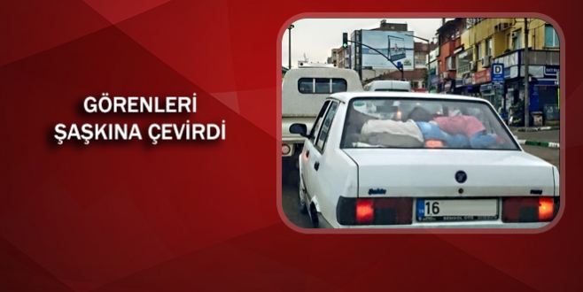 Kent meydanında öğle saatlerinde çekilen fotoğrafta, içinde yer kalmadığı için 2 çocuğun arka camın boşluğuna yatarak yolculuk etmesi görenleri şaşırttı. İçinde kaç kişinin bulunduğu bilinmeyen araç bu şekilde yola devam etti. Tehlikeli yolculuğun kahramanları ise yanlarından geçenlerin şaşkın bakışlarına aldırış etmedi. Kurallara uymayan sürücüyü eleştiren İbrahim Topuz, “bu kadarda olmaz” derken “her yıl kazalarda yüzlerce insanımızı kaybediyoruz ama bir türlü ders almıyoruz" yorumunu yaptı.
