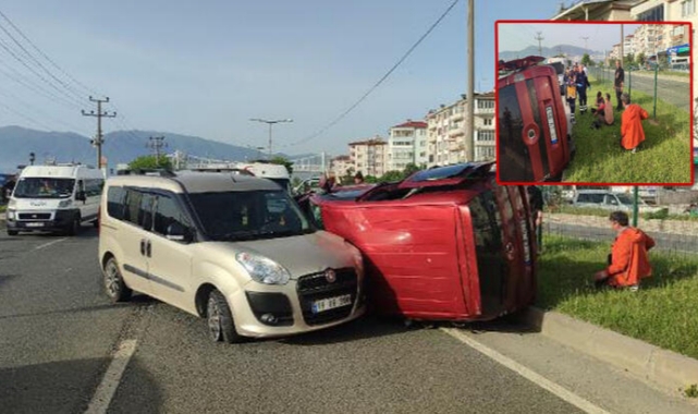 Bursa'nın Orhangazi ilçesinde yol verme konusunda tartışan 2 sürücünün kullandığı hafif ticari araçlar çarpıştı. Kazada devrilen araçtaki 3 kişi yaralandı.