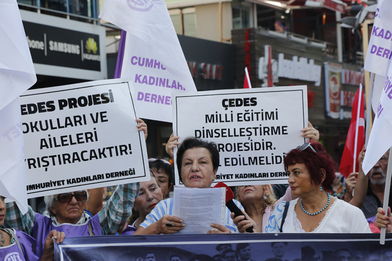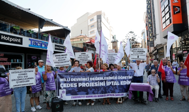 2023-2024 eğitim öğretim yılıyla birlikte, yurt genelindeki tüm ilkokul, ortaokul ve liselerde uygulamaya giren ÇEDES projesine tepkiler artıyor. Cumhuriyetçi Kadınlar Derneği Antalya Şubesi, ÇEDES’in iptali için Kapalıyol girişinde basın açıklaması düzenleyerek imza kampanyası başlattı. Milli Eğitim Bakanı Yusuf Tekin’e, öncelikli görülen üç konuda uyarılarda bulunarak ve önerileri iletmek istediklerini belirten Cumhuriyet Kadınları Derneği Konyaaltı Şube Başkanı Fatma Özdemir, “Milli Eğitim Bakanlığının milli eğitimimizin temel esaslarını yok sayan veya bu esaslarla çelişen uygulamalarını ve bunların da “hak ve özgürlükler” kılıfı altında savunulmasını Cumhuriyet Kadınları Derneği olarak kınıyoruz. Halkımızın da şimdi dile getireceğimiz bu hususlarda aynı duyarlılık içinde olduğuna inanıyoruz. Öncelikle, Türkiye Devleti’nin yasalarıyla çelişen hak ve özgürlükler olamayacağını belirtmek isteriz” dedi.
