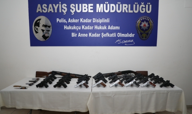 Uygulamalarda, 27'si kurusıkı olmak üzere 627 tabanca, 65 av tüfeği, 5 bin 400 fişek ve 117 kesici alet ele geçirildi.