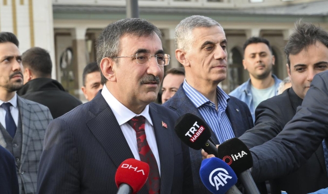 Bayram namazını Cumhurbaşkanlığı Külliyesi'ndeki Beştepe Millet Camisi'nde kılan Cumhurbaşkanı Yardımcısı Cevdet Yılmaz, cami çıkışında bekleyen basın mensuplarına konuştu.