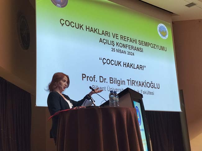 Bilkent Üniversitesi Hukuk Fakültesi Öğr. Üyesi Prof. Dr. Bilgin Tiryakioğlu ise çocuk hukuku alanında aslına farkına varılmasa da uzun yıllardan beri devam eden bir yaklaşım olduğuna işarete ederek şunları söyledi: “Özellikle bu yaklaşım, çocukların korunmaya muhtaç, küçük varlıklar ve nesne olarak görme anlayışı hem hukuk kurallarına hem de hukuk kurallarına uygun olarak çıkartılan diğer ikinci mevzuata, aslında toplumsal uygulamalara kadar yansımıştı. Bu ‘Çocuk Hukuku’ dediğimiz yaklaşım artık yavaş yavaş terk edilmeye başlamıştır. Devlet çocukları geleceğimiz olarak gördüğünde, onlara müdahale etme ve onları kendi isteğimizle belli ideolojilere göre şekillendirme imkanına sahip oluyoruz ki bu korkunç bir şey. Bugün gelinen noktada hak temelli (çocuk özne) dediğimiz yaklaşım var. Çocukların kendilerine özgü nitelikleri göz önüne alınarak ve bazı öncelikler de gözetilerek hakların sahibi olmalarını sağlamak amaçlanmaktadır. Şu anda ise hak temelli yaklaşım ve korumacı yaklaşım birlikte hakim olarak varlığını sürdürüyor. Bu haklar hepimizin doğuştan hakkı, bu çocuklar için de böyledir.”