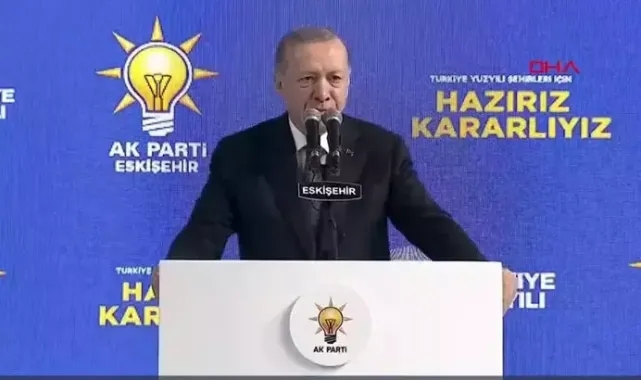 Cumhurbaşkanı Recep Tayyip Erdoğan, ilçe belediye başkanlarının tanıtım toplantısı için Eskişehir’e geldi. Hava yoluyla kente gelen Erdoğan’ı, AK Parti milletvekilleri ile Eskişehir Büyükşehir Belediye Başkan Adayı Nebi Hatipoğlu karşıladı. Tanıtım toplantısının yapıldığı Şehit Anıl Gür Spor Salonu’nda partililerce coşkuyla karşılanan Erdoğan, “AK Parti ve Cumhur İttifakı olarak Eskişehir’de büyükşehir ve ilçeleriyle destan yazacaklarını söyledi. Yerel seçimler için partililerden destek isteyen Cumhurbaşkanı Erdoğan, “Eskişehir’in 31 Mart’ta tercihini gerçek belediyecilikten yana kullanacağından şüphe duymuyorum. Ülkemize ve şehirlerimize vakit kaybettiren, kaynak ve enerji israf ettiren şov, ajans, ideolojik dayatma, millettin ortak değerlerinin istismarı siyasetinin artık sonuna gelinmiştir. İnşallah 31 Mart eser ve hizmet belediyeciliğinin sembolü olacaktır. Kuruluşun ve kurtuluşun şehri Eskişehir, Türkiye Yüzyılı belediyeciliğinin öncülüğünü yapacaktır. Bundan 30 yıl önce belediyelerde elde ettiği başarılarla milletin gönlüne girmiş bir kadro olarak, önümüzdeki seçimlerde bir kez daha aynı yolda bismillah diyeceğiz” dedi.