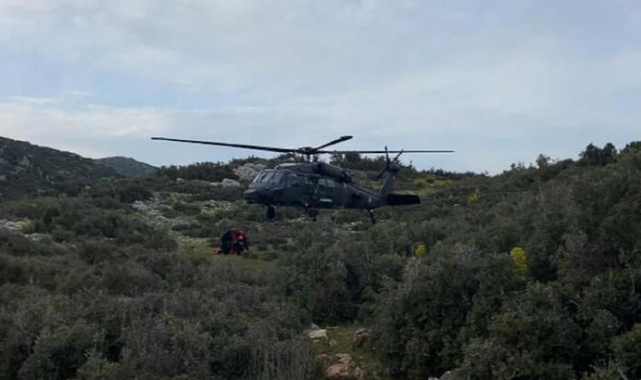 Dağlık alana düşen paraşütçü, jandarma helikopteriyle taşındı
