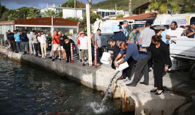 Muğla'nın Bodrum ilçesinde, deniz dibi ve kıyı temizliğinde 15 tona yakın atık toplanırken, denize 100 bin balık yavrusu salındı.