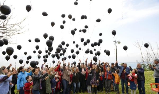 Depremde hayatını kaybedenler anısına siyah balon uçurdular