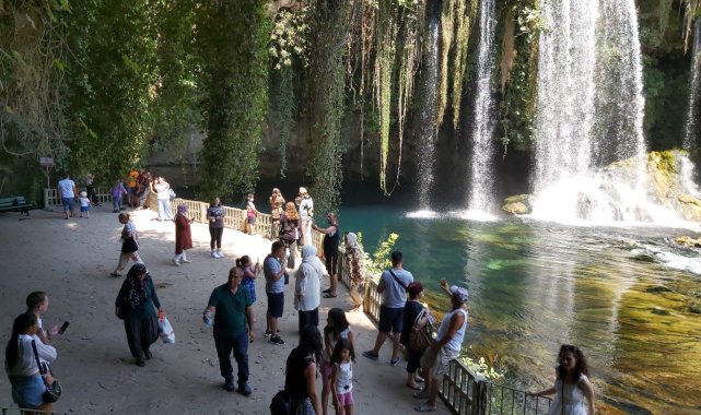 - ANTALYA'nın en önemli simgelerinden Düden Şelalesi, 2025 yılı boyunca yaklaşık 900 bin ziyaretçi ağırlayarak, kent turizmine büyük katkı sağladı. Dört mevsim canlılığını koruyan şelale, doğal güzellikleri ve huzurlu atmosferiyle, yıl boyunca turistlerin gözdesi oldu. Antalya Büyükşehir Belediyesi'nin işletmesini sürdürdüğü Düden Şelalesi, çağlayan suların oluşturduğu zenginlik, yemyeşil alanlar ve doğal dokusuyla yılın her döneminde ziyaretçilere nefes aldıran bir kaçış noktası olmayı sürdürüyor. Düden Şelalesi, yıl boyunca, bu doğal dokuyu yaşamak isteyen ziyaretçilerin akınına uğradı. Dört mevsim boyunca yerli ve yabancı birçok turistin uğrak noktalarından olan Düden Şelalesi, 2025 yılı boyunca yaklaşık 900 bin yerli ve yabancı turisti ağırlayarak, şehirdeki turizme büyük katkı sağladı. HUZURLU ATMOSFEREn yoğun ilgiyi yaz aylarında gören Düden Şelalesi, yaz boyunca aylık 150 binden fazla ziyaretçiyi misafir ediyor. Soğuk kış günlerinde dahi ilgiyi kaybetmeyen şelale, bahar aylarının getirdiği güzelliklerle birlikte ziyaretçi sayısında artış yaşıyor. Düden Şelalesi, doğal güzellikleri ve dingin atmosferiyle, turistlere ve Antalyalılara, doğayla iç içe huzurlu bir atmosfer imkanı sunuyor.