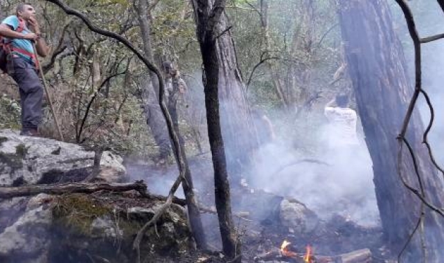 Antalya'nın Kemer ilçesinde 5'inci günde kontrol altına alınan orman yangınının etkilediği bölgede, ağaçların diplerindeki otluk kısımlarda yer yer duman yükseliyor. Helikopterle tespit edilen bu bölgelere ormancı ve gönüllülerden oluşan bir ekip, müdahale ediyor. Dün 45 derece eğimli 15 kilometrelik sarp yolu katederek duman çıkan noktaları söndüren ekip, bugün daha kalabalık bir grupla yola çıktı.