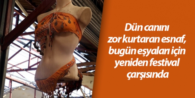 Dün canını zor kurtaran esnaf, bugün eşyaları için yeniden festival çarşısında