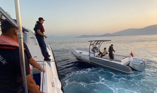 Muğla'nın Fethiye ilçesi açıklarında lastik botta 2 düzensiz göçmen yakalandı.
