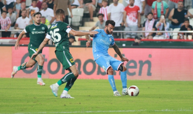 SARI KARTLAR: Jakub Kałuziński, Gerrit Holtmann (Antalyaspor), Ahmet Oğuz, Bruno Paz (Konyaspor) MAÇTAN DAKİKALAR 4'üncü dakikada savunmadan Ömer’in uzun pasıyla hızlı atağa çıkan Antalyaspor’da Assombalonga’dan topu alan Bytyqi, ceza yayının solundan şutunu çekti. Savunmaya da çarpan top yandan dışarı çıktı. 15’inci dakikada sağ kanattan gelişen Antalyaspor atağında Bünyamin’in ortasına penaltı noktası üzerinde Assombalonga yükseldi ancak savunmanın kafasından seken top arka tarafa açıldı. Bu sırada Calvo yerde kalırken uzak tarafta topu kontrol eden Bytyqi yerden bir vuruşla yakın köşeden topu ağlara yolladı. Ancak öncesinde hakem faul düdüğünü çalmıştı. Assombalonga, hava topunda Calvo’ya faul yaptı. 28’inci dakikada Antalyaspor’un sol kanattan kazandığı serbest vuruş dolayısıyla tüm hatlarıyla ileri çıktığı anda kendi yarı alanında topu kapan Konyaspor, Michalak’la kontra atağa çıktı. Sağ kanattan hızla içeri sokulan Polonyalı futbolcunun çaprazdan sert şutunda top uzak direğin yanından auta çıktı. 45+4’üncü dakikada orta alanda baskıyla topu kazanan Antalyaspor’da Fredy’nin uzun pasıyla sağ kanattan savunma arkasına sarkan Assombalonga boş durumda ceza alanına sokuldu ve kale alanı önüne doğru pasını çıkardı. O bölgedeki Bytyqi kontrol sonrası vuruşunu yaptı ancak önünü iyi kapatan Konyaspor savunması topun kaleye gitmesine engel oldu. 51’inci dakikada sol kanattan gelişen Konyaspor atağında ceza alanı yan çizgisinden ön çizgiye doğru topu çeken Marlos Moreno, sağ ayağıyla uzak köşeye vurdu. Top direğin yanından dışarı çıktı. 60’ıncı dakikada konuk ekibin kazandığı penaltıda topun başına geçen Cikalleshi, sağ ayağının içiyle sol alt köşeye sert vurdu. Kaleci Helton Leite köşeyi doğru tahmin etse de topu çıkarmayı başaramadı:0-1 87’nci dakikada sağ kanattan gelişen Antalyaspor atağında Holtmann taç çizgisi önünde rakibinden topu kurtarıp sol ayağıyla ortasını yaptı, arka direkte kendini unutturan Güray, kale alanı önünden sol ayağının içiyle gelişine dokundu ve yakın mesafeden topu ağlara yolladı: 1-1 MURAT ESENTEKİN