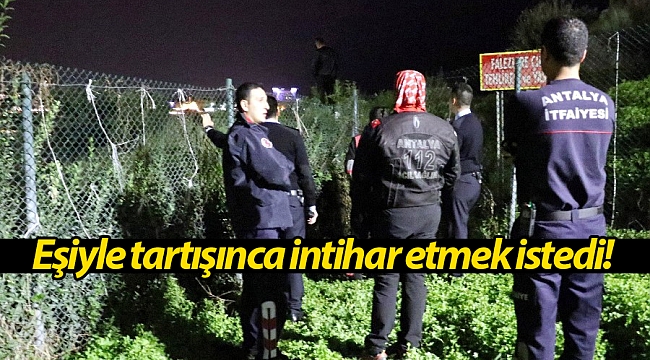 Olay, 20.30 sıralarında Muratpaşa ilçesi Konyaaltı Caddesi üzerindeki Yavuz Özcan Parkı'nda meydana geldi. Edinilen bilgiye göre, 4 çocuk annesi M.A., eşi Cemil A.'dan (31) kendisine ve çocuklarına şiddet uyguladığı gerekçesiyle boşanma kararı aldı. M.A.'nın kararı eşiyle paylaşmasının ardından sinirlenen Cemil A., evden çıkıp intihar etmek için falezlere geldi. Çevredeki vatandaşların ihbarı üzerine olay yerine polis, itfaiye ve sağlık ekipleri sevk edildi. Polisin ikna etmeye çalıştığı Cemil A., eşinin gelmesi durumunda intihardan vazgeçeceğini söyledi. Bunun üzerine polis, M.A.'yı arayarak durumu bildirdi.
