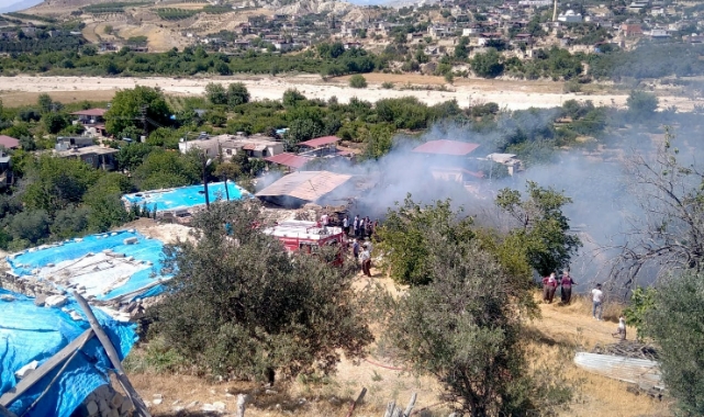Kısa sürede büyüyen alevler, evin yanındaki ahıra da sıçradı.
