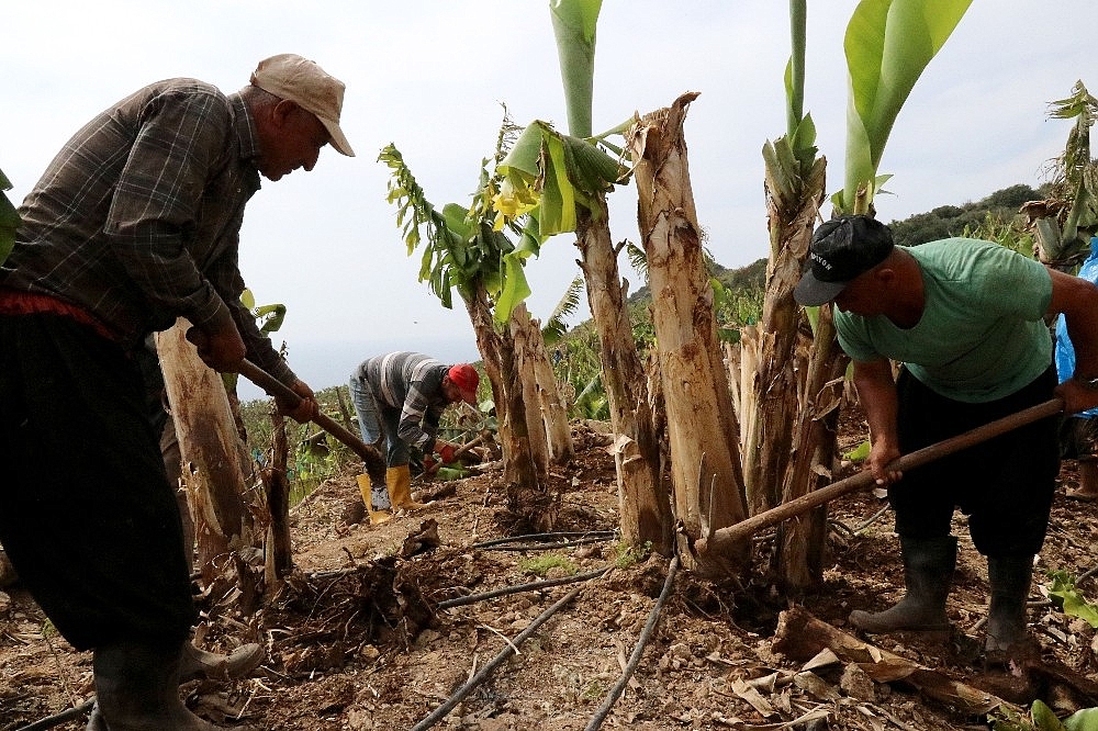 Yüzlerce kişinin 3 ay boyunca iş imkanı bulduğu bahçelerde çalışmalar şenlik havasında sürüyor. Bahçelerde Türk vatandaşlar kadar Suriyeli ve Kuzey Iraklı Türkmenler de çalışma fırsatı buluyor. Kimi vatandaşlar muz bahçelerinde kurdukları çadır ve barakalarda kalıp çalışırken, kimi vatandaşlar da köylerden günü birlik otobüslerle muz bahçelerine gelerek çalışıyor.